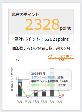1月の結果は1237ポイント(=円)でした。