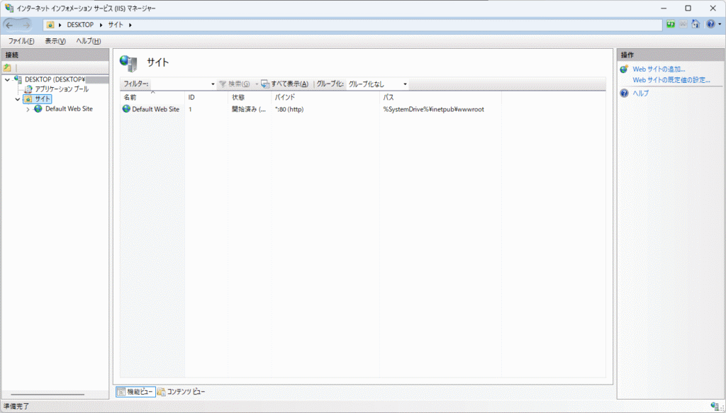 有効化したIISを確認しておきましょう。